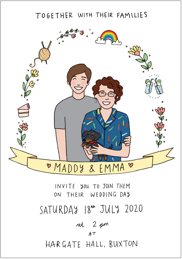 Maddy and Emma came to me to design their wedding invitations. We captured their bright and smiley personality in their invitations.