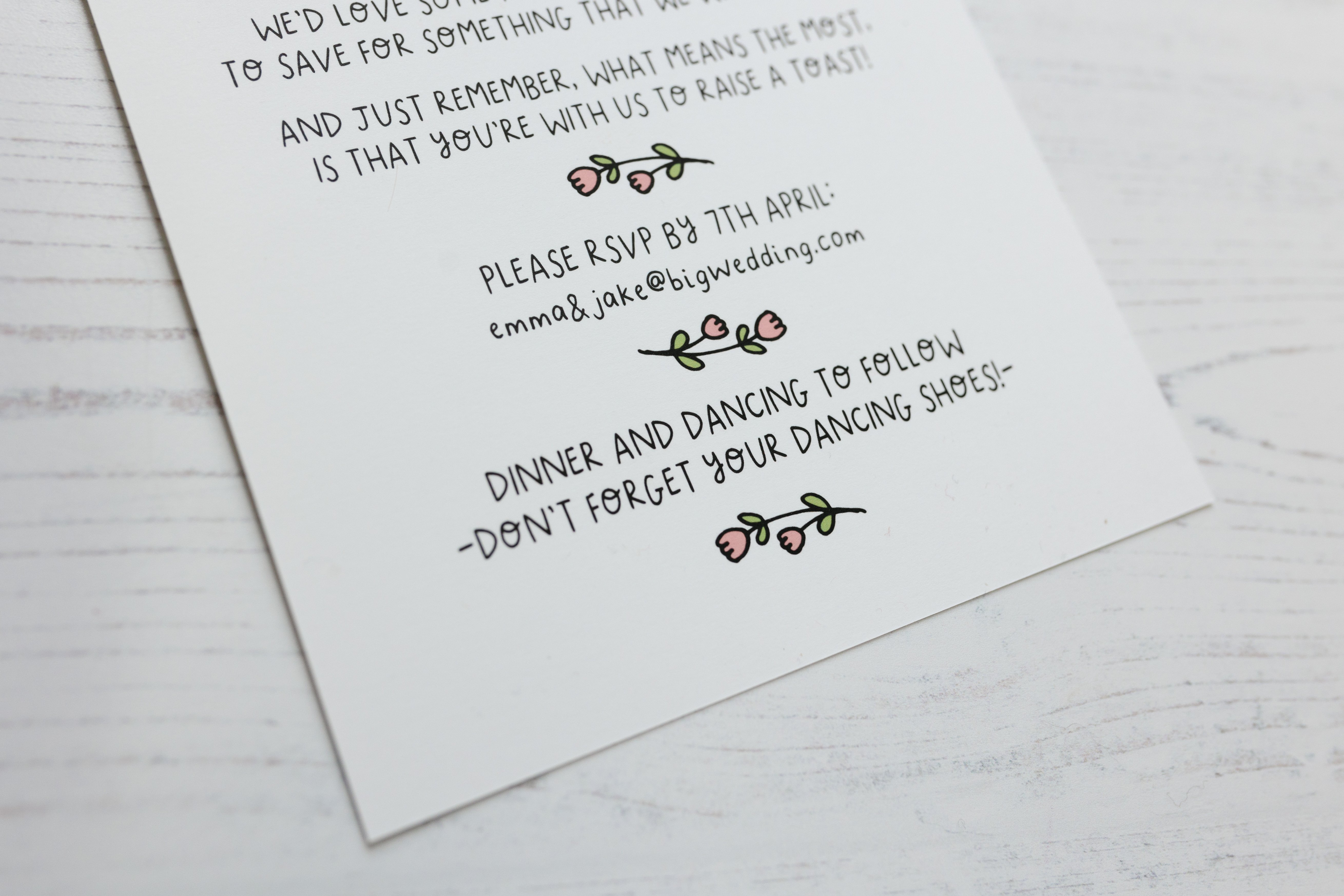 ā I can offer printing for you if you would like me to do the hard work for you! Email me or message me for a quote for your printed wedding invitations and wedding stationery – hello [!at] jessicawoodhouse.com