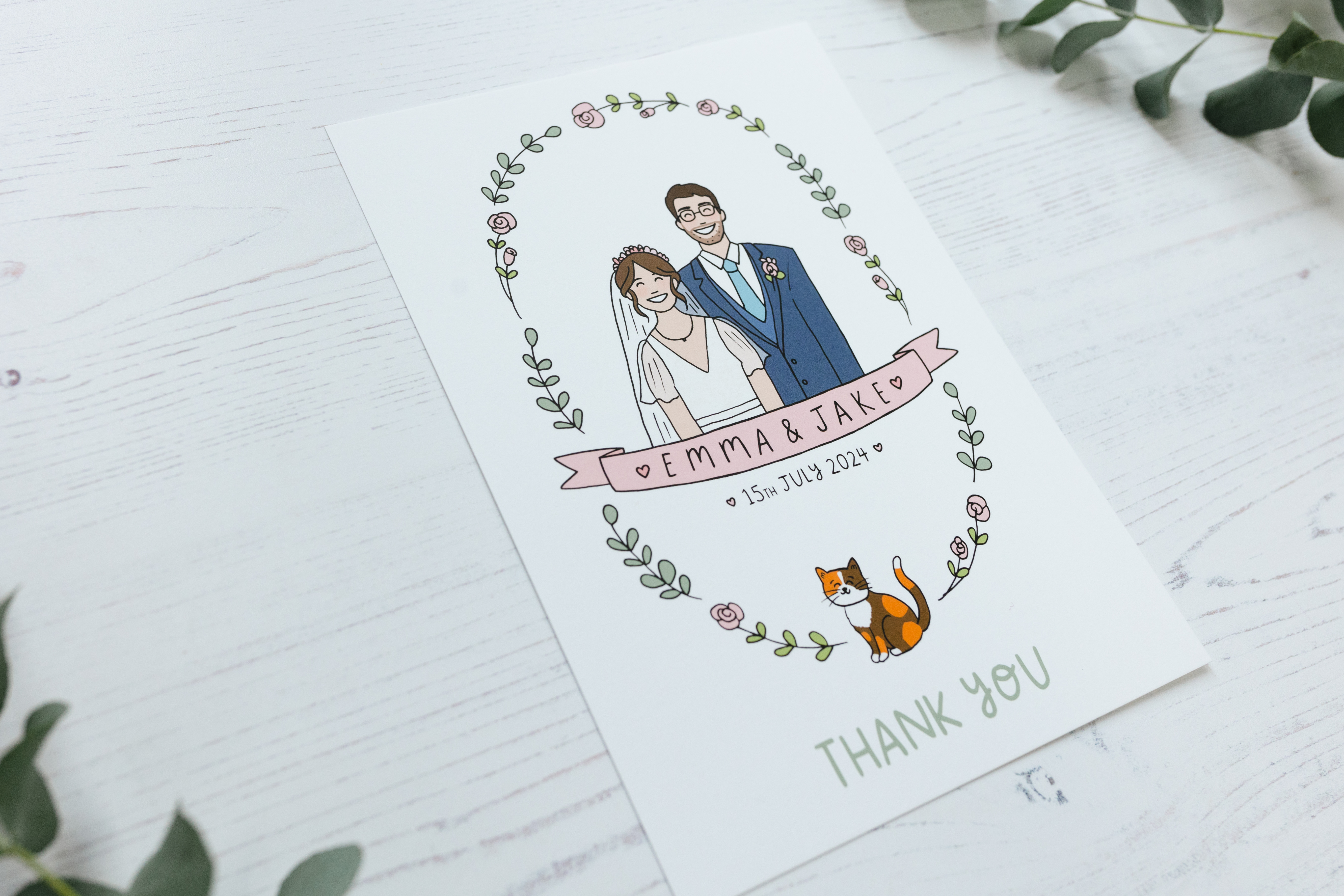 ā Totally unique and personal – your guests will be so excited opening these Thank You Cards and seeing you as an illustration!