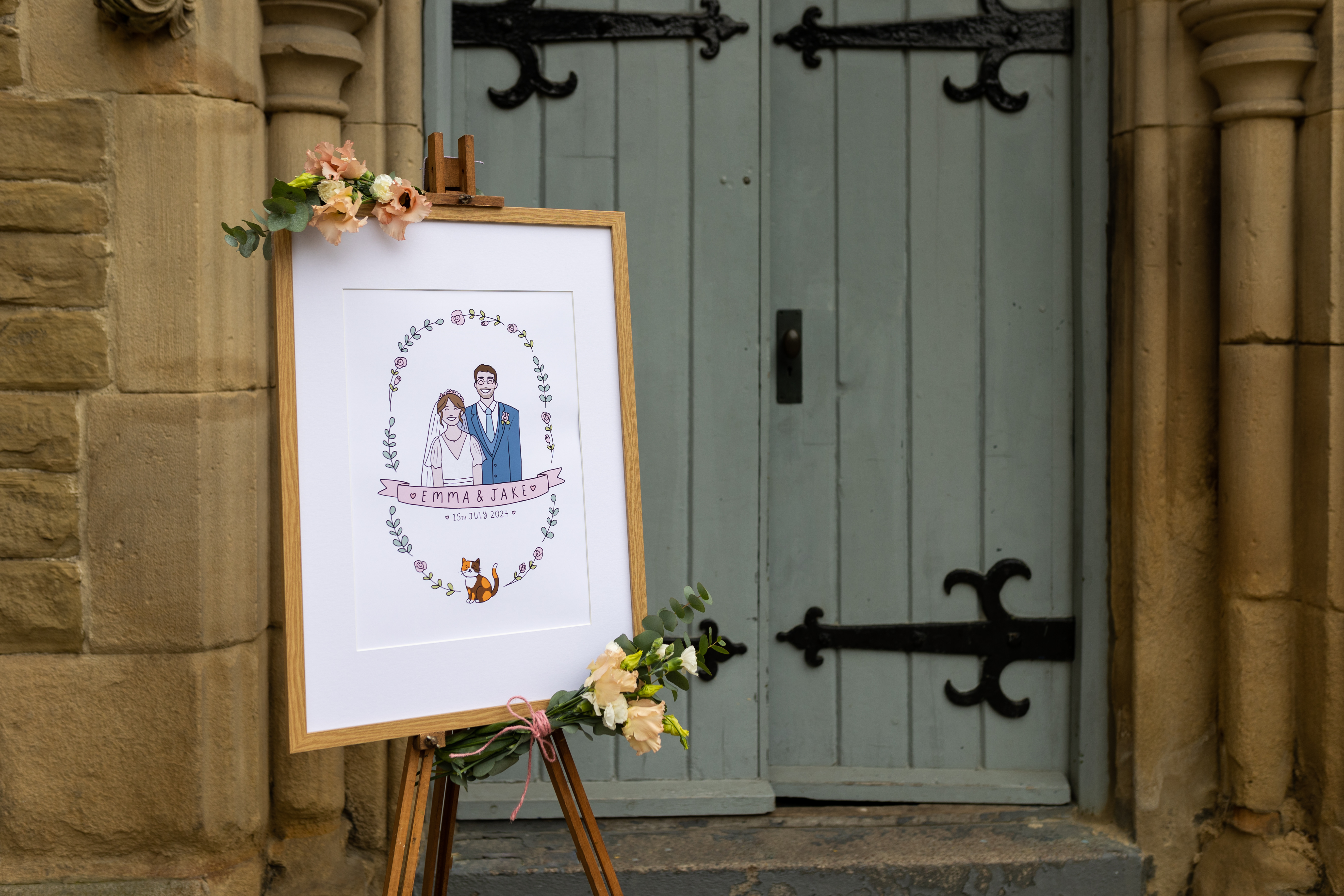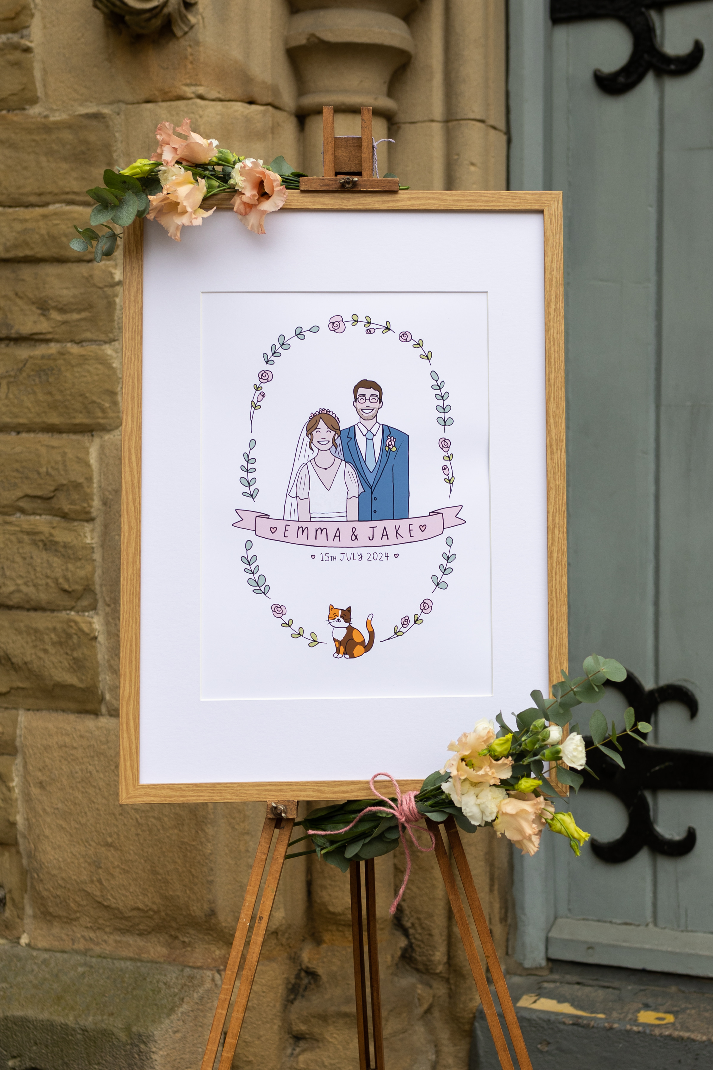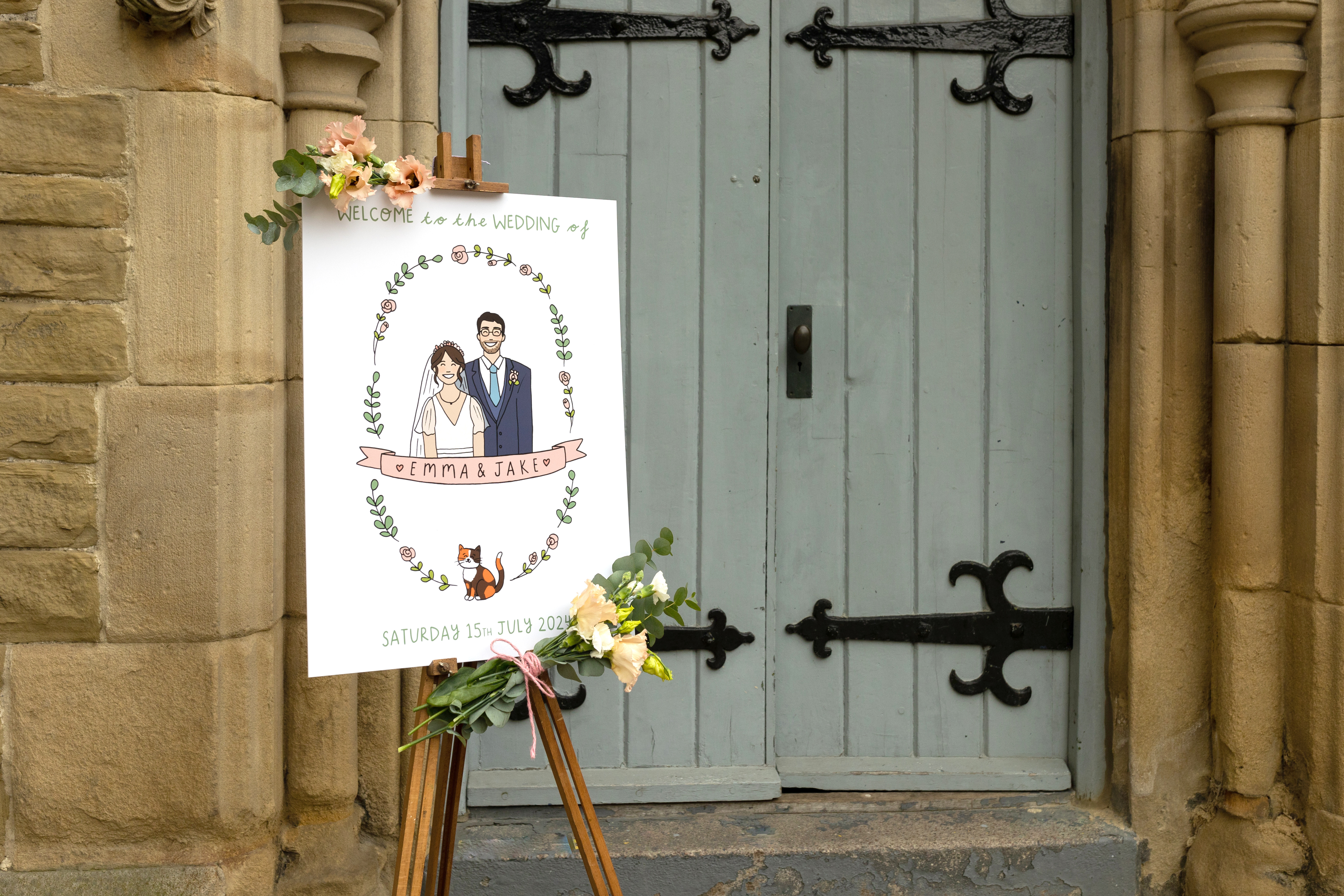 ā A beautiful personalised illustration of the couple warmly welcoming your guests to your special day!
