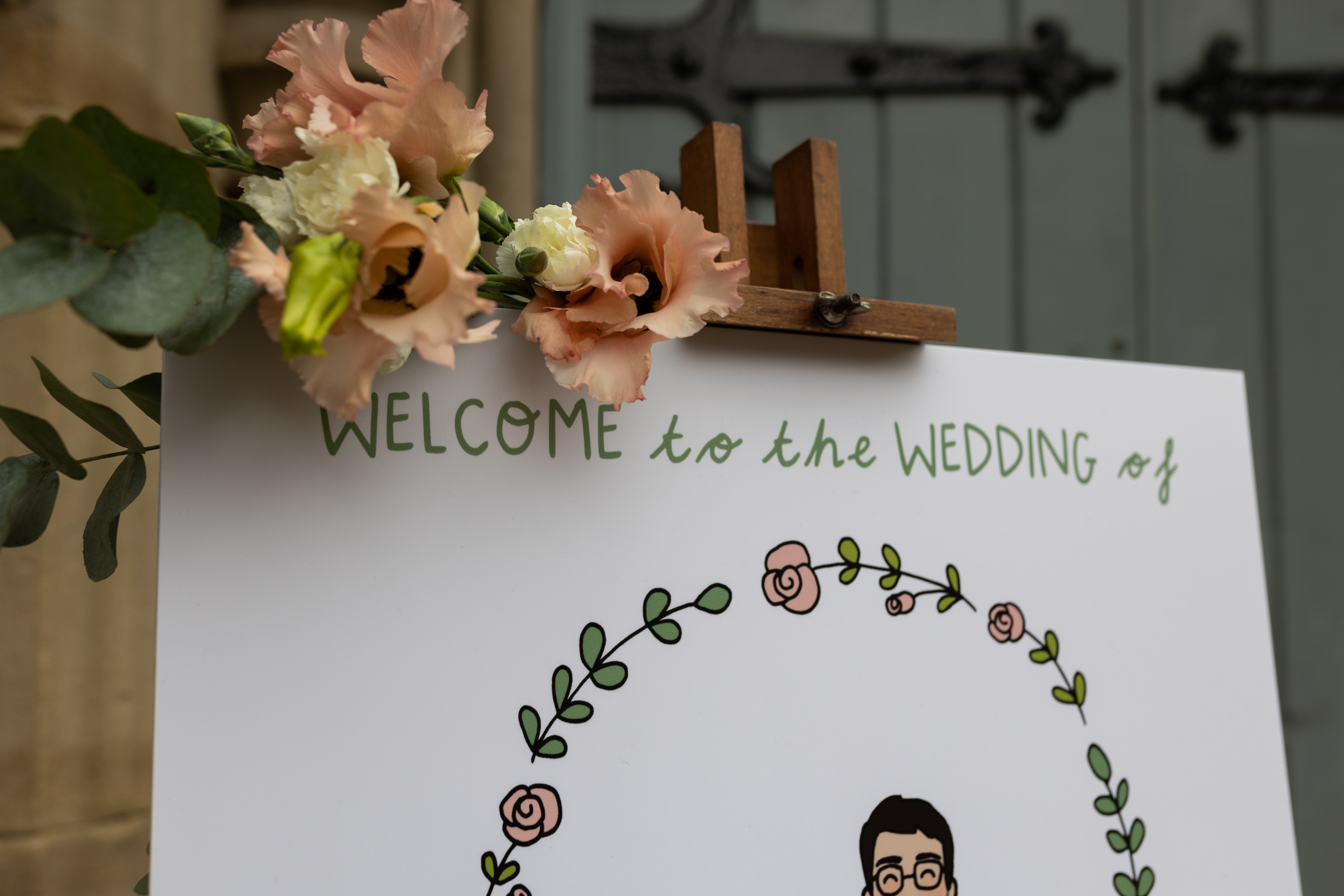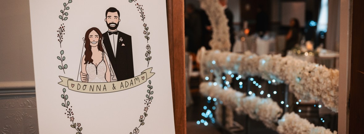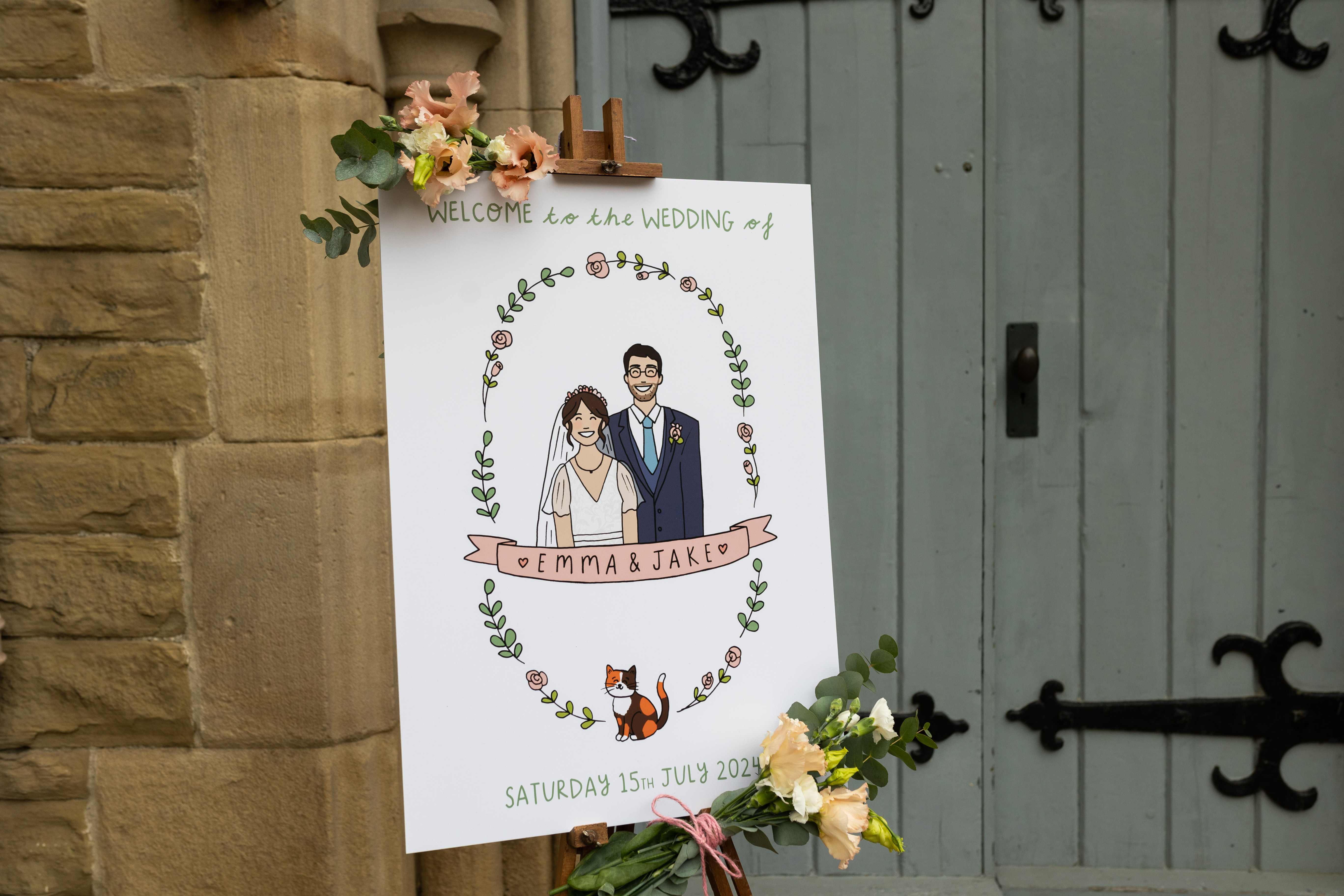 ā A beautiful personalised illustration of the couple warmly welcoming your guests to your special day!