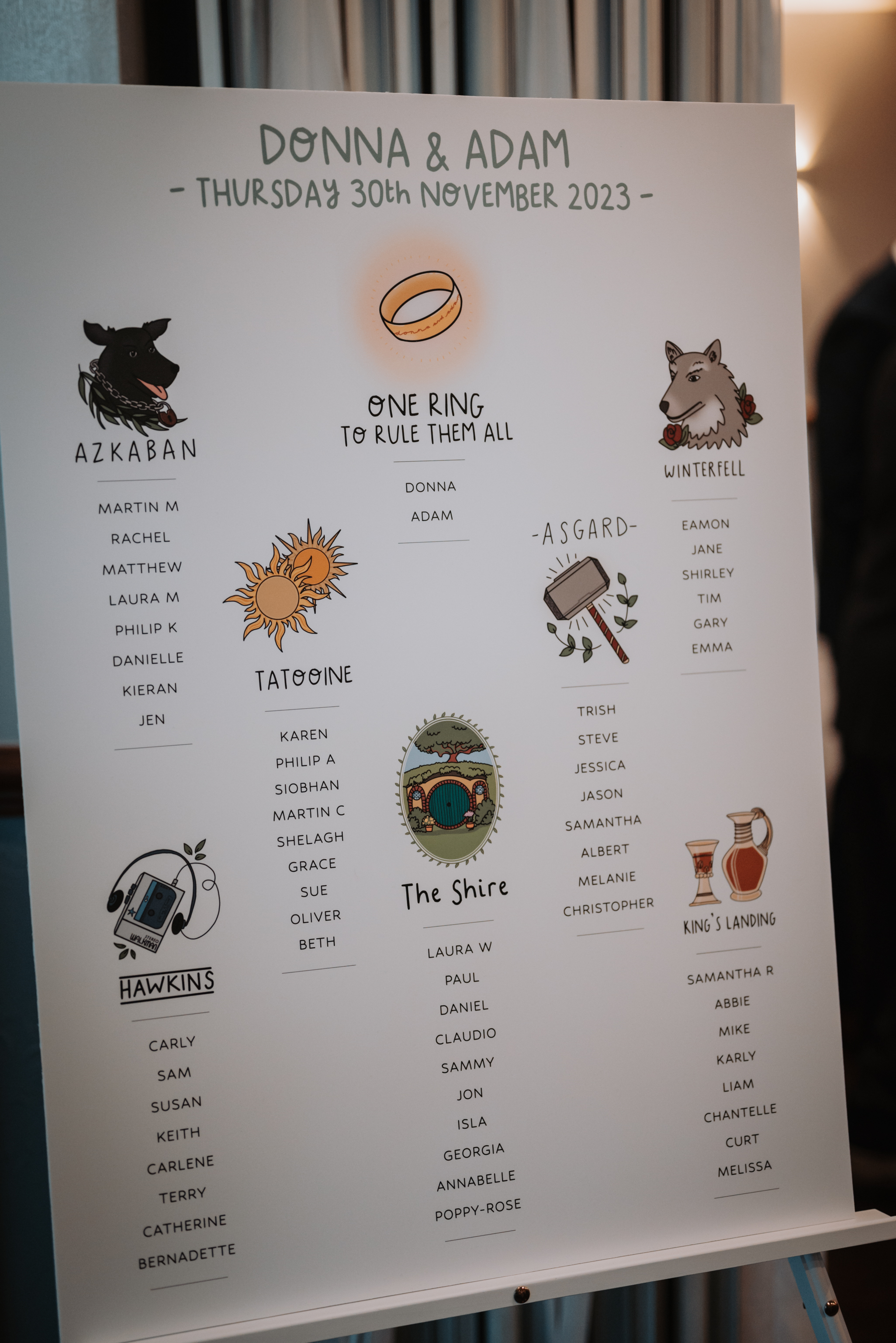 The two of them came up with the brilliant plan of having fictional locations as their wedding table names. They gave me the list and asked me to come up with an illustration to represent each place name. What a dream brief to have!